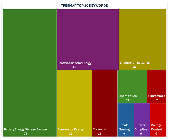 Based on Table 2, it was possible to specify search strategies using logical (Boolean) operators like “AND” and “OR”. Initial tests were performed to identify closenesses among searching strategies, resulting in a more effective search methodology. For instance, the authors noticed that combining the keyword “Battery Energy Storage” with other terms from Table 2 results in a higher number of covered papers compared to the same term combinations by using the keyword “Battery Energy Storage Systems”. Apparently, due either to a higher paper visibility or to a restricted number of characters (in the title, mainly), other authors decided to refer to these kinds of systems by omitting the term “Systems”. Such a simple example shows that a common approach would yield a limited selection, restricting the option with a higher number of found papers. However, such an approach might restrict the search covering range by excluding those papers whose authors decided to include the term “Systems” in their respective published titles. Therefore, taking into account the main purpose of this work (an SLR), a better option seems to be merging both options at first and then filtering the entire collection by removing duplicates and out of context studies.