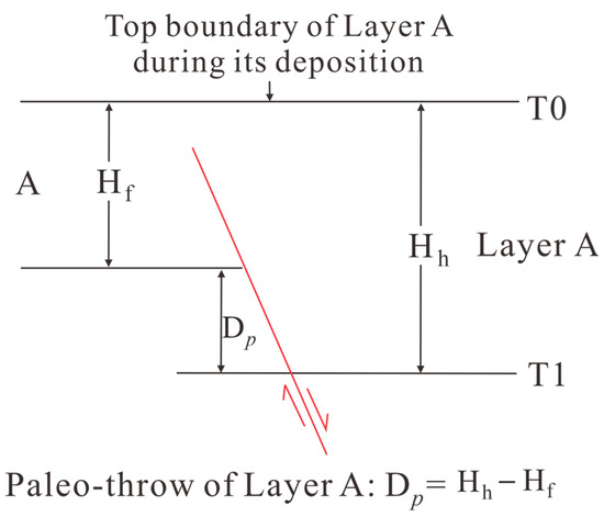 Schematic diagram illustrating the calculation of paleo-throw (D) across the fault.