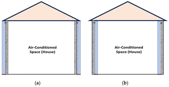The thermal performance of building envelopes is characterized by their thermal resistance or R-value, which measures the capability of an envelope assembly to resist heat flow due to a temperature difference across its inner and outer surfaces. Building envelope systems with higher R-values exhibit better thermal insulation properties and lower heat transmission [11]. Moreover, the placement and thickness of the insulation layer can significantly affect the overall R-value of the building envelope assemblies [12]. The presence of air cavities between insulation layers and other construction layers can significantly affect the R-values of building envelope assemblies, with optimal positioning and material selection critical to maximizing energy efficiency [13]. In most applications to building envelope systems, sealed air cavities impede heat flow due to the low thermal conductivity of stationary air, and these sealed cavities can act as thermal barriers and can enhance the overall R-value of building envelope assemblies [14]. However, the thickness of the sealed air cavity may need to be optimized to maximize the thermal performance of building envelope assemblies [15,16]. Moreover, the inclusion of reflective coatings within sealed air cavities can further enhance their thermal performance [17,18]. Thermal impacts of sealed air spaces within specific configurations of building envelope assemblies are documented in the ASHRAE Handbook of Fundamentals [19].