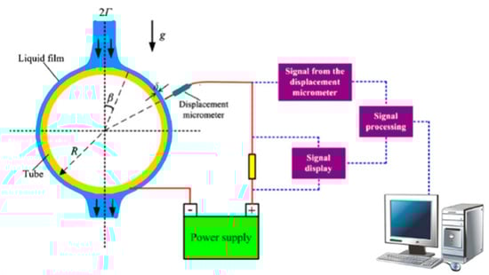 - Hazuku, T.; Fukamachi, N.; Takamasa, T.; Hibiki, T.; Ishii, M. Measurement of liquid film in microchannels using a laser focus displacement meter. Exp. Fluids 2005, 38, 780–788. [Google Scholar] [CrossRef]