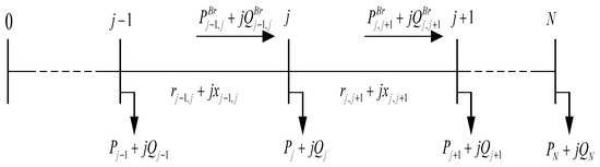 Consider a single-line network consisting of N + 1 nodes, as illustrated in Figure 1. The branch currents are expressed by Equations (1)–(3) in [27]: