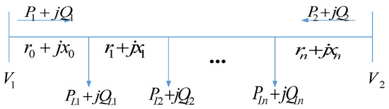Figure 4 depicts n pure load nodes between two measurement nodes, labeled as 1 and 2. The power flows at these measurement nodes are expressed as P1 + jQ1 and P2 + jQ2, respectively. Under the uniform load assumption, each node carries an average load of PL + jQL, which can be calculated using Equations (27) and (28).