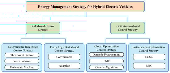 Summary of hybrid energy management strategy categories for HEVs [65,66,67].