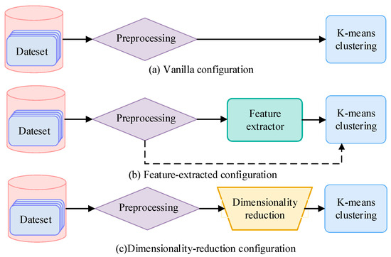 Flowchart of three typical data-processing configurations using K-means clustering.