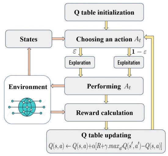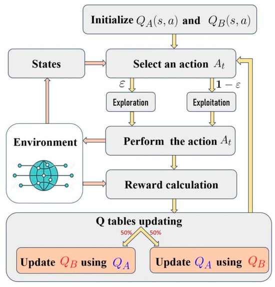 Among various RL algorithms, Q-Learning and SARSA are widely used representatives. As shown in Figure 11, Q-Learning is favored in HEV energy management due to its simplicity and deployment flexibility. It can gradually approximate optimal control policies even under conditions of incomplete information or inaccurate prediction, effectively improving fuel economy and extending battery lifespan [56,57]. SARSA, another value-based method, continuously updates the value of state-action pairs (Q(s, a)) in its Q-table to iteratively enhance the policy performance [58]. Given the high cost and safety risks associated with trial-and-error learning on physical vehicles, RL is typically trained offline within high-fidelity simulation environments. By utilizing extensive simulated driving data to achieve policy convergence, the trained model can then be deployed in real vehicles, with online learning and parameter fine-tuning incorporated to maintain a superior performance even under battery degradation or external condition fluctuations [59,60].