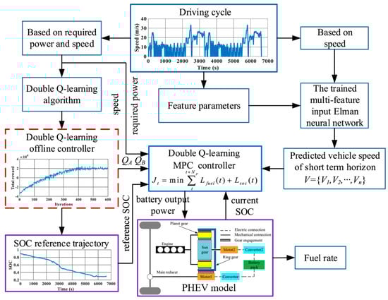 Block diagram of energy management for plug-in Hybrid Electric Vehicles based on the DQL–MPC algorithm.