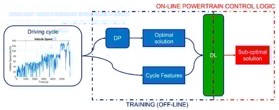 On the other hand, data-driven approaches harness large-scale data and machine learning techniques to build models that can make decisions based on vehicle data—either from past records or in real time. These strategies often involve using neural networks or comparable tools to approximate optimal policies, or to function directly as controllers that learn how to split power between the engine and the electric motor. Crucially, these systems bypass the need for manually crafted rules, instead extracting control logic autonomously from extensive simulation or real-world data [28,29]. That said, their effectiveness is closely tied to the depth and diversity of the training datasets, along with the model’s ability to generalize to new conditions [29].