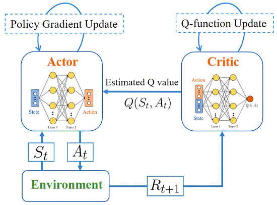 In reinforcement learning (RL), an agent interacts continuously with the environment and adjusts its strategy based on reward and punishment feedback, aiming to maximize long-term cumulative returns. As illustrated in Figure 10, RL plays a pivotal role in the energy management system of HEVs. It enables dynamic decision-making for power distribution between the internal combustion engine and electric motor while simultaneously considering multidimensional feedback such as fuel efficiency, emission impacts, and battery health, thereby continuously optimizing control strategies [52,53,54]. In contrast to conventional supervised learning methods, RL does not rely on predefined labeled datasets and exhibits a strong capacity for autonomous learning. This makes it particularly well-suited for complex driving scenarios characterized by a high uncertainty and dynamic environmental changes [55].