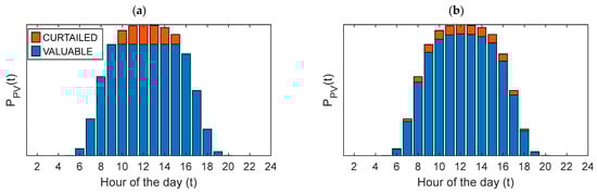 The two hourly profiles (named the upper limit (UL) and proportional (PR) profiles) reported by Kato et al. [37] and illustrated in Figure 2 were considered and compared for the hourly distribution of the curtailment level.