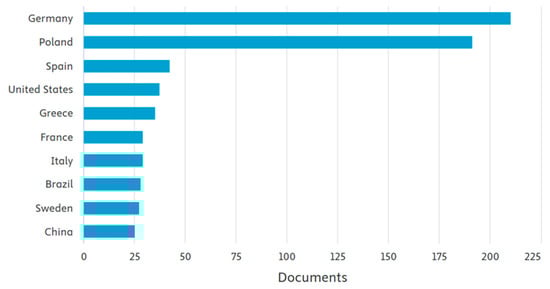 Germany and Poland were identified as the countries with the largest number of documents generated, as shown in Figure 2.