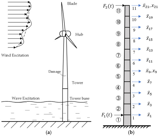 As shown in Figure 5a, an OWT tower from the National Renewable Energy Laboratory (NREL) technical report [41] is employed to validate the proposed method.