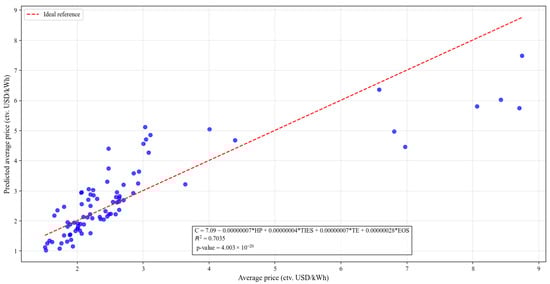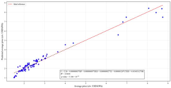 Additionally, Figure 2 clearly shows that the settlement ratio has a significant effect on the average unit energy supply price. Until 2022, both variables remained relatively stable, with only minor fluctuations. However, starting in 2023, there is an abrupt change in the settlement ratio that coincides with a sharp increase in the average price, suggesting that regulatory changes have an immediate and notable impact on energy supply costs in Ecuador. This finding highlights the importance of explicitly incorporating regulatory factors in energy price modeling.