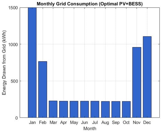 Monthly grid consumption (optimal PV + BESS).