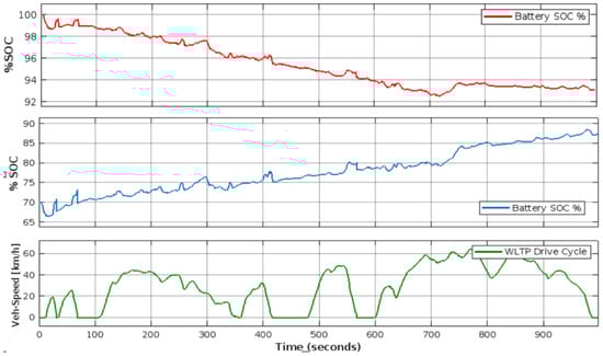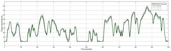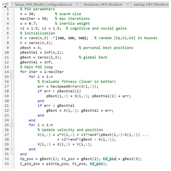 It is worthwhile to also note that the PSO tuning in our study was performed offline to determine the PID gains. Once optimized, these gains are fixed, and the controller operates in real time with minimal computation. In other words, the vehicle’s control unit would simply apply the precomputed PID parameters at each control timestep. This offline calibration/online control approach is common in HEV design (for example, the ECMS control law utilizes offline-optimized parameters in real-time execution). Thus, although the PSO was run offline, the resulting PID controller is inherently real-time implementable. In practice, one can periodically re-run the offline PSO or use a fast adaptive method (e.g., a lookup table or model-predictive scheme) to update the gains if conditions change; however, the core control law itself can run live on the vehicle without further optimization.