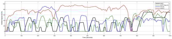 According to Table 2, several parameters define the physical characteristics of the vehicle. The vehicle mass is 2316 kg, and the gross weight is 3500 kg, indicating the load-bearing capacity and general robustness of the vehicle. The frontal area is 4.17 square meters, which, together with the aerodynamic drag coefficient and air density, are important parameters for calculating the aerodynamic drag force in the energy consumption and fuel economy simulations. These are necessary variables for modeling tractive forces and vehicle dynamics in simulation environments [20].