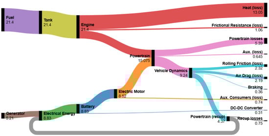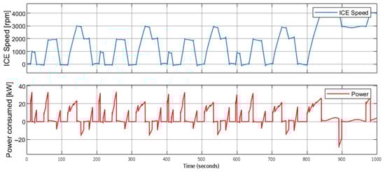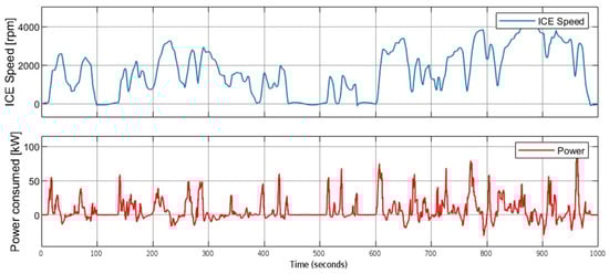 These calculations of the power output for conventional and series–parallel HEVs should be equalized to compare their fuel consumption and CO2 emissions under the same power requirements and torque. The simulation results indicate that these parameters are crucial for obtaining robust models that can accurately forecast fuel economy and transient performance [24,25].