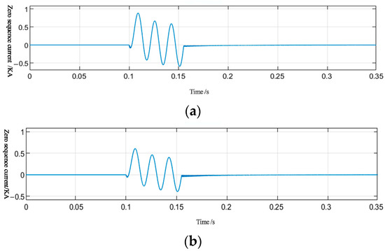 Zero-sequence current at different fault distances. (a) The fault distance is 13 km. (b) The fault distance is 25 km.