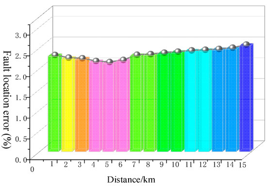 The results in Table 4 show that the size of the grounding resistance has a certain influence on the result of fault location. Judging from the trend of change, as the grounding resistance gradually increases, the nonmetallic property becomes stronger, and the accuracy of fault location decreases. However, the error is still within 200 m, and relatively accurate fault location results can still be obtained.