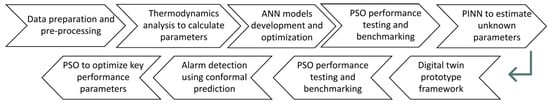 The remainder of this paper is organized as follows. Section 2 details the methodology, including thermodynamic modeling, ANN development, PINN-based estimation, and PSO optimization overview and benchmarking. Section 3 presents the results of critical parameter estimation from the thermodynamic model and PINN-based estimation, ANN model performances, and performance optimization outcomes. Section 4 discloses the conclusion, limitations, and future work.