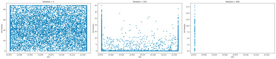 The training strategy is built upon the framework illustrated in Figure 5. The ANN model to predict TIT that had been previously optimized was used to make the prediction. But, for this case, additional trainable parameters consisting of AFR and are added with initial conditions (ICs). Boundary conditions (BCs) for both parameters are also defined as 15–55 for AFR and 0.95–1 for . ICs for AFR are set for five different values of [15, 20, 25, 30, 35], whereas ICs for and are, respectively, set to 1 and 0.5. The rationale of multiple ICs for AFR is to explore a wider range of possible solutions of AFR.
