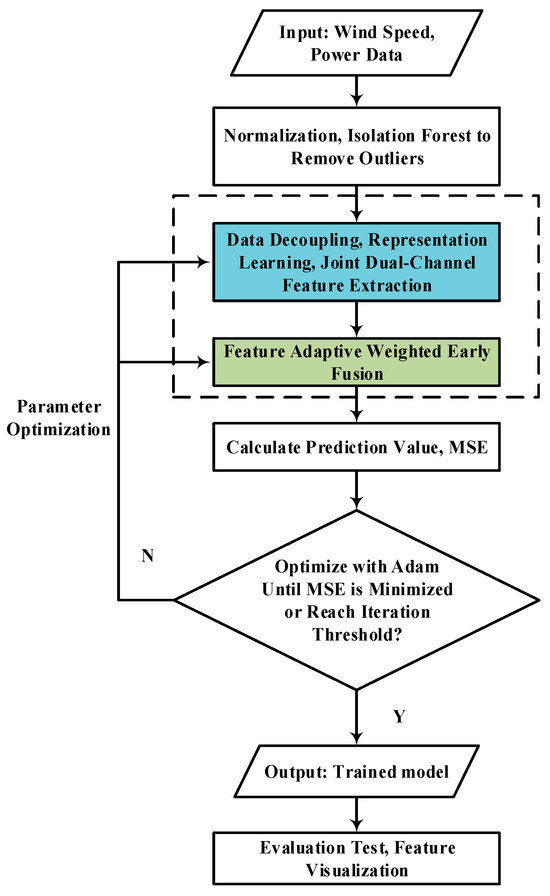 In addition, the quality of feature extraction directly impacts predictive performance. Current research optimizes input features through strategies such as multi-source data fusion, feature selection and denoising, and decomposition techniques. In terms of multi-source data fusion, reference [10] integrates meteorological data (wind speed, wind direction, temperature, pressure), geographic information (wind field layout), and historical power data. Reference [11] proposed a cross regional data transfer learning framework (WG Refine), but its adaptability to complex terrain areas still needs to be validated. In terms of feature selection and denoising, reference [1] adopts a hybrid adaptive decomposition denoising algorithm to solve the problems of unreasonable decomposition and residual noise. In terms of decomposition techniques, methods such as variational mode decomposition (VMD) and empirical mode decomposition (EMD) are widely used in multi-scale analysis. Reference [12] combines VMD and GRU to achieve accurate wind power prediction, while reference [7] decomposes subsequences into VMD and inputs them into ANN. Meanwhile, references [4,13] used the multivariate variational mode decomposition (MVMD) method to simultaneously analyze wind power and meteorological sequences. Reference [14] uses the Energy Entropy Theory (EVMD) to determine the number of VMD and solve the problem of excessive VMD. Reference [15] proposes a VMD-CEMDAN dual decomposition strategy to improve model prediction accuracy. The quadratic decomposition ensemble BiLSTM model in reference [4] reduces noise interference through multi-level decomposition. The aforementioned studies have not adequately considered the incomplete feature extraction at individual time steps from a local-global perspective, nor have they sufficiently explored how to improve accuracy through this approach.