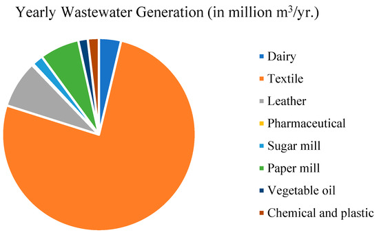 Generation of wastewater from different types of industries in Bangladesh [41,42,43,44,45,46].