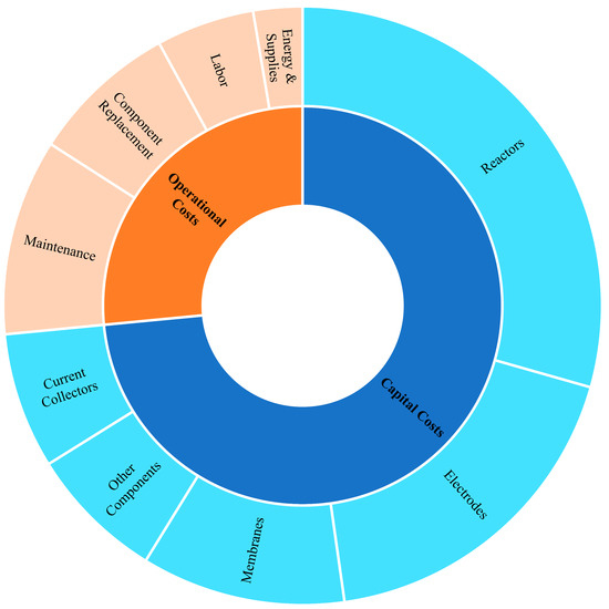 This includes the cost of electricity for running pumps and other ancillary equipment, though much of the system’s power needs could be met through the electricity generated by the MFC itself. The breakdown structure of the capital costs and operational costs is demonstrated in Figure 8.