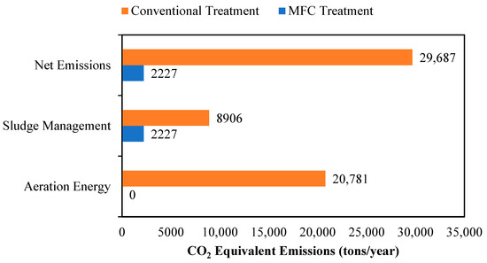 MFC systems have a typical lifespan of 10 to 15 years, with the durability of components like electrodes and membranes being the key factors in their longevity [26,108]. Advances in electrode materials, such as activated carbon or semicoke, can extend the system’s life while reducing operational costs. For instance, the cost of electricity per watt (W) for semicoke and activated carbon is 2.8% and 22.7% that of graphite electrodes, respectively [109].