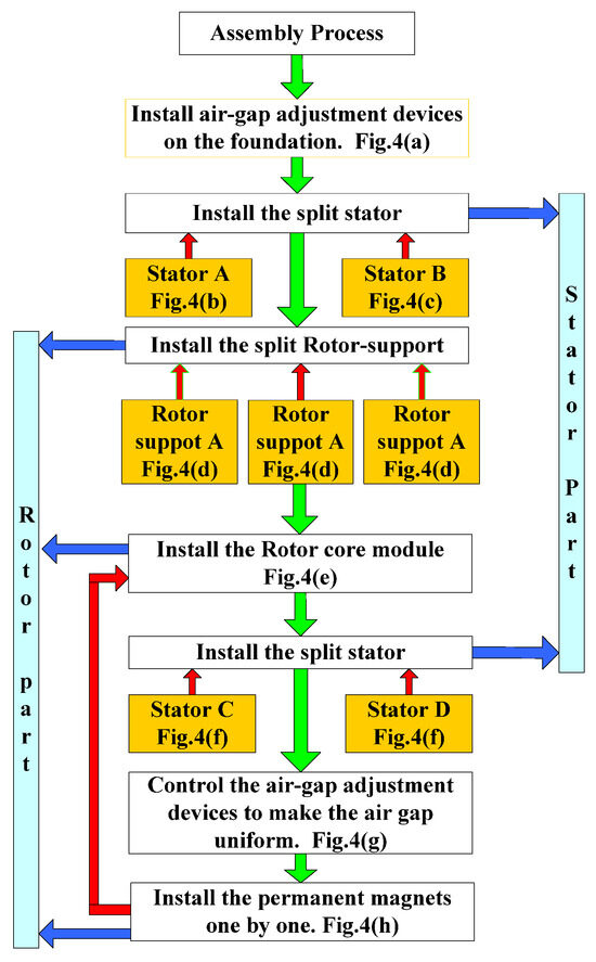 Assemble the split stators A and B on the air gap adjustment device, as shown in Figure 4b,c.