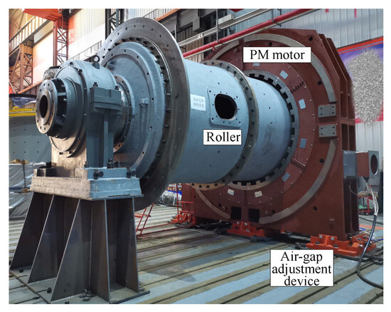The manufacturing and assembly of a PMIM for ball mills was completed using the non-magnetic processing technology. The design parameters of the motor are listed in Table 2, and a physical photo is shown in Figure 22.