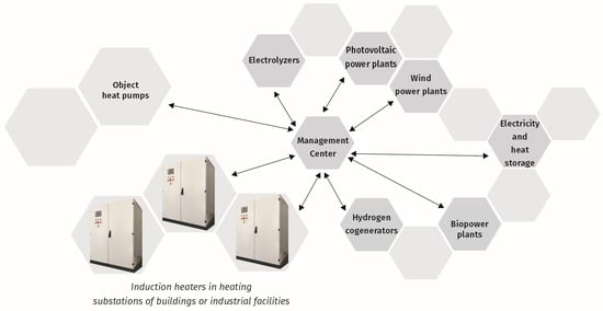 The cost of electric heating using induction boilers is approximately twice as high as heating with heat pumps. Therefore, the price of electricity is a critical factor. Of particular importance is the local generation of renewable electricity through distributed energy systems and prosumer-based production, which are not burdened by distribution costs. Prosumer electricity should be transmitted via local “green networks” within economic zones or municipal areas (LGU). An additional factor in optimizing the cost of heat is the presence of a local thermal energy storage system.