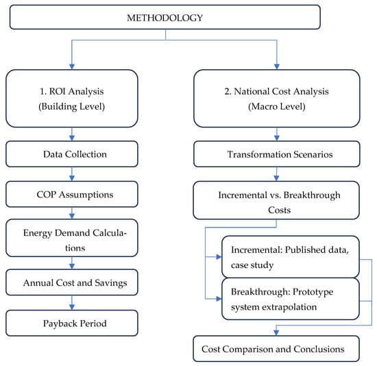 To estimate the costs of transitioning from conventional district heating to electric-based heating systems (electroheating), two analyses were conducted, as presented on flowchart on Figure 4.