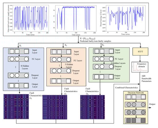 - We propose a multi-scale feature extraction network architecture based on joint time–frequency information for fault detection. First, the model extracts the local and global time-domain features of the data by distributing the sample to multiple independent network branches with different depths. Then, we analyze the frequency-domain parameters of the sample sequence using discrete STFT, and the frequency-domain information is used to assist in the time-domain feature for improving fault detection accuracy.