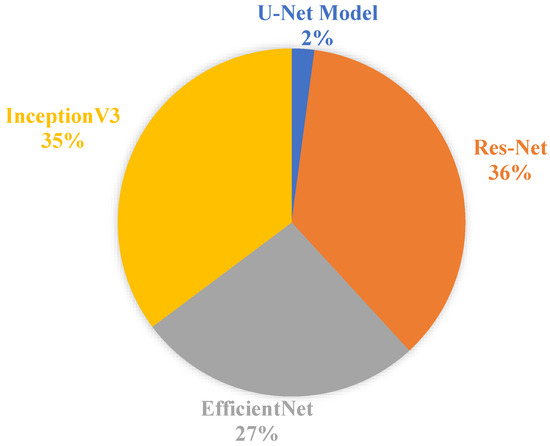 Figure 26 illustrates the distribution of file sizes for the models. The U-Net model exhibits the smallest file size. The model, around 50 MB in size, possesses the greatest predictive capability. According to Table 9, the mean prediction time for all models, excluding Efficient Net, is 0.07 s. The model exhibits the lowest F1 and IoU scores for Efficient Net. As demonstrated in the models, as the F1 score drops below 0.95, the predictive performance of the model diminishes, while its generalization capability enhances.
