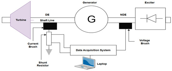 Shaft earthing brushes (SEBs) play a critical role in mitigating these issues by providing a low-impedance path for the safe discharge of shaft currents to ground. These SEBs provide a low-impedance path to ground, preventing electrical discharge machining and pitting of bearing surfaces [1,2]. If an SEB deteriorates or fails, dangerous shaft currents can flow through bearings, leading to overheating and premature failure [2,3,4,5]. Undetected brush faults can result in costly unplanned outages of generators that are critical for grid reliability [3,4,6]. Therefore, the timely detection and diagnosis of SEB faults are of paramount importance for the safe and efficient operation of turbine generators [7,8].