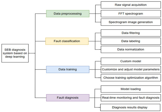 The functional architecture of the deep learning-based shaft earthing brush (SEB) fault diagnosis system, designed in alignment with the operational characteristics of generator earthing fault mechanisms.