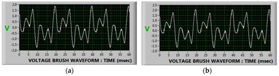Effective fault diagnosis in shaft earthing brush systems requires accurate preprocessing of acquired signals to ensure consistent and reliable input to the diagnostic model. Shaft voltage and current signals were collected from high-impedance voltage-sensing brushes at the non-drive end (NDE) and low-impedance current grounding brushes at the drive end (DE), under both healthy and induced fault conditions—such as brush wear, oil/dust contamination, and floating contact.