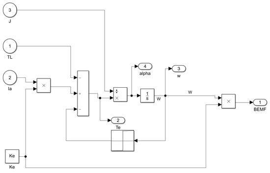 where represents applied voltage, states the current, signifies the armature resistance, defines back EMF constant, and stands for angular velocity. Figure 2 shows the model of motor dynamic.