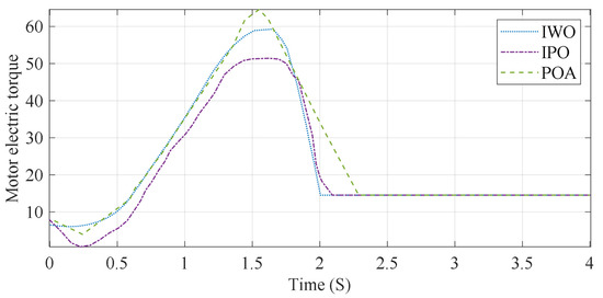 Each algorithm was subjected to 150 iterations with 30 runs under the same conditions of PID search bounds. The objective function used was the integral of time-weighted absolute error (ITAE) for EV motor voltage control in dynamically changing conditions (see Table 4).