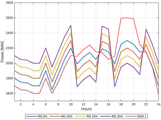 There is a scenario where a 20% response to the demand is injected, which will be determined in this case study as maximum and feasible; the solution is presented in Figure 14.