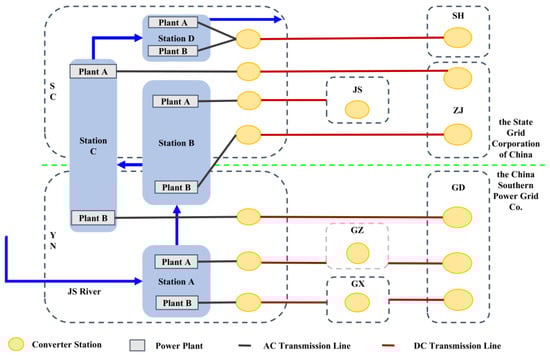As illustrated in Figure 1, the Cascaded Hydropower System of the lower Jinsha River (CHSJS), located in the southwest of China, represents the most prominent mainstream hydropower system in the country. It comprises four mega-scale hydropower stations with a total installed capacity of 46.46 GW, approximately 11% of China’s total hydropower capacity, and serves multiple receiving provinces that jointly account for nearly one-third of the national Gross Domestic Product (GDP) [5]. Owing to its scale, operational complexity, and strategic importance, the CHSJS plays a pivotal role in both China’s hydropower sector and its broader energy security architecture [6].