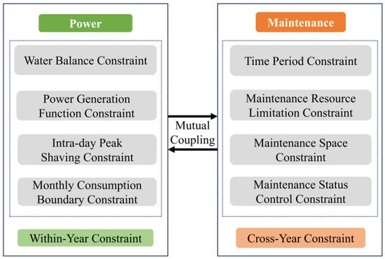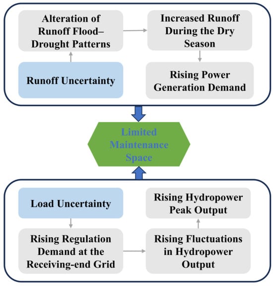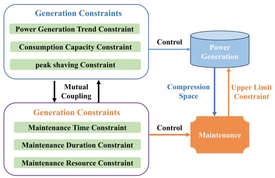 Spatially, generation and maintenance continuously compete for limited capacity. During dry seasons or high-load periods, the space available for maintenance is compressed by peak generation demands, while scheduled maintenance, in turn, imposes capacity restrictions that limit the achievable power output and flexibility of the system. This inherent spatial and temporal coupling creates significant operational tension between the two functions [30].