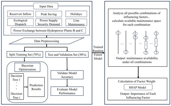 Consequently, along with the quantification of their relative weights and interaction mechanisms, a systematic analysis of these complex influencing factors has become essential for improving the quality and feasibility of maintenance scheduling across the CHSJS. As illustrated in Figure 6, explainable machine learning techniques can be applied to identify and quantify the importance of various maintenance influencing factors based on the operational characteristics of the cascade and its actual maintenance requirements. This data-driven approach enables planners to rationally prioritize scheduling decisions, reduce conflicts with power dispatch operations, and adapt maintenance planning to evolving system conditions in a more intelligent and efficient manner.