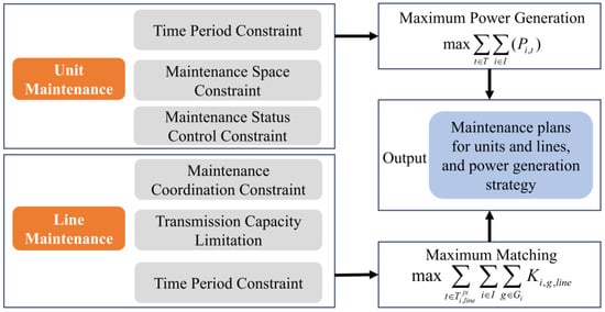Large-scale cascaded hydropower systems form a cornerstone of China’s clean energy framework. In addition to supplying vast amounts of low-carbon electricity, they serve as essential flexible resources supporting long-distance, inter-provincial, and cross-regional power transmission [1]. It is of vital importance to determine reasonable maintenance schedules of hydropower units because this work significantly affects the power generation, dispatching, and operation safety and stability of power grids [2,3,4].