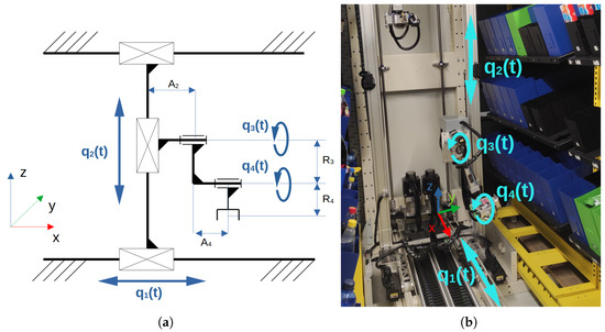 Custom retail manipulator: (a) kinematic diagram, (b) real object. Reproduced with permission of Hemitech Sp. z o.o.