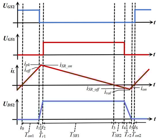 If Uin ≤ 0.5Uo, S1 is turned off at t3, Coss1 and Coss2 are resonant with L, Coss1 is charged, and Coss2 is discharged. At t5, the voltage UDS2 at both ends of Coss2 drops to 0, and ZVS can be realized.
