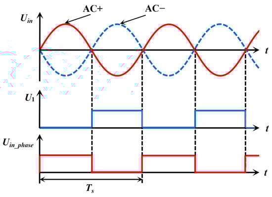 In addition, the 220 VAC input voltage sampling circuit mainly samples its phase and numerical information. It is necessary to construct the sampling circuit separately, which increases the structural complexity. Furthermore, to meet the requirements of the input voltage threshold range of the analog-to-digital converter (ADC) pin of the control chip, the additional bias voltage of the sampling circuit is required, which increases the workload of the auxiliary power supply design.