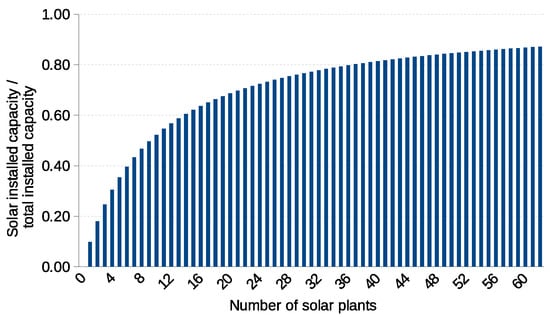 For simplicity, the solar plants are assumed to be randomly distributed across the nodes of the transmission grid, as illustrated in