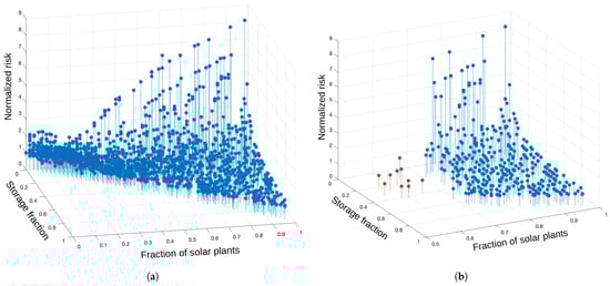 In addition to the specific case of the Balearic Islands, this approach allows for the extraction of general recommendations that may guide similar planning efforts in other locations. While additional storage generally helps to improve system reliability, it is also costly. The results of this study show that carefully optimized configurations can substantially reduce the number of solar plants that require storage while keeping blackout risk low. Importantly, identifying such configurations is not straightforward and requires extensive statistical analysis. A key insight is that spatial correlations in solar generation must be taken into account, as distributing storage capacity across zones with the least correlated solar fluctuations can significantly improve resilience and reduce the need for redundant infrastructure.