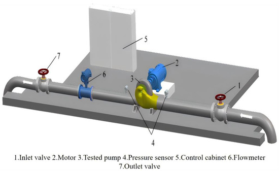 Experimental verification was conducted on an open test rig at Shandong Shuanglun Co., Ltd. to validate numerical simulation accuracy. The prototype pump was instrumented with identical pressure sensors at both inlet and outlet, while electromagnetic flow sensors measured volumetric flow rates. Critical sensor specifications are detailed in Table 4, with the test bench configuration illustrated in Figure 5.